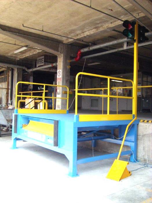 Rampe collocate su struttura autoportante completa di balconcini o paratie laterali e composte principalmente da: struttura autoportante indipendente dalle opere murarie corredata di banchine o paratie metalliche laterali, pianale in lamiera antisdrucciolevole, flap di raccordo, centralina oleodinamica, pistone per la movimentazione del piano mobile, pistone per la movimentazione del flap di raccordo, quadro elettrico di comando.